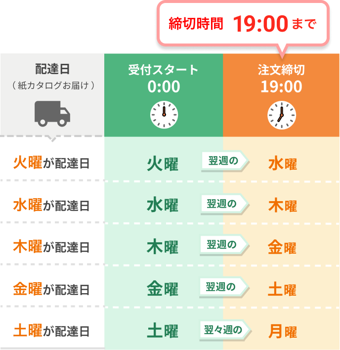• ただし、火曜日の深夜2:00〜5:00はメンテナンス時間によりご注文できません。