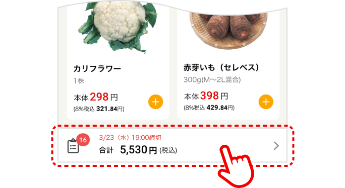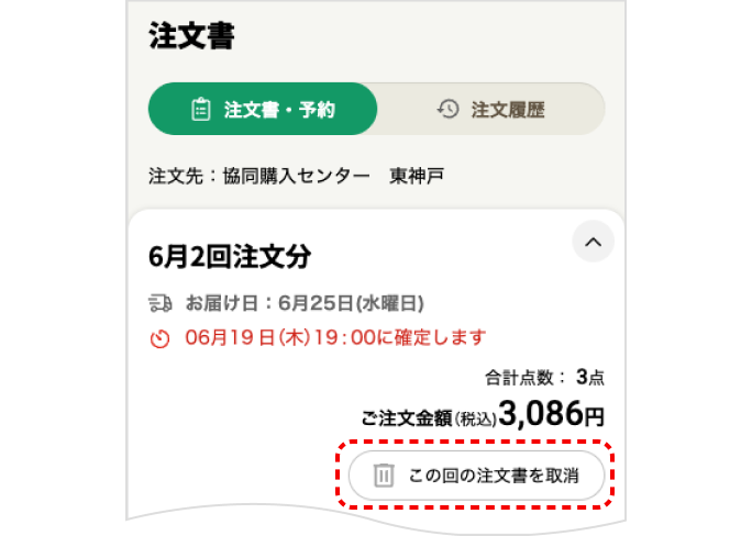 注文締切時間がきたら、ご注文の内容が自動的に確定します。