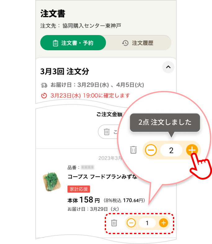 Web注文・アプリ注文は配達日の翌日19:00まで可能です。(土曜日配達の方は翌週月曜日19:00まで)
