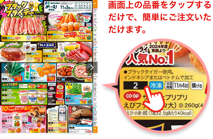 毎週お届けする商品カタログ(めーむ)。商品やお届けに関する多くの情報が掲載されています。アプリからも「WEBめーむ」カタログをご利用いただけます。