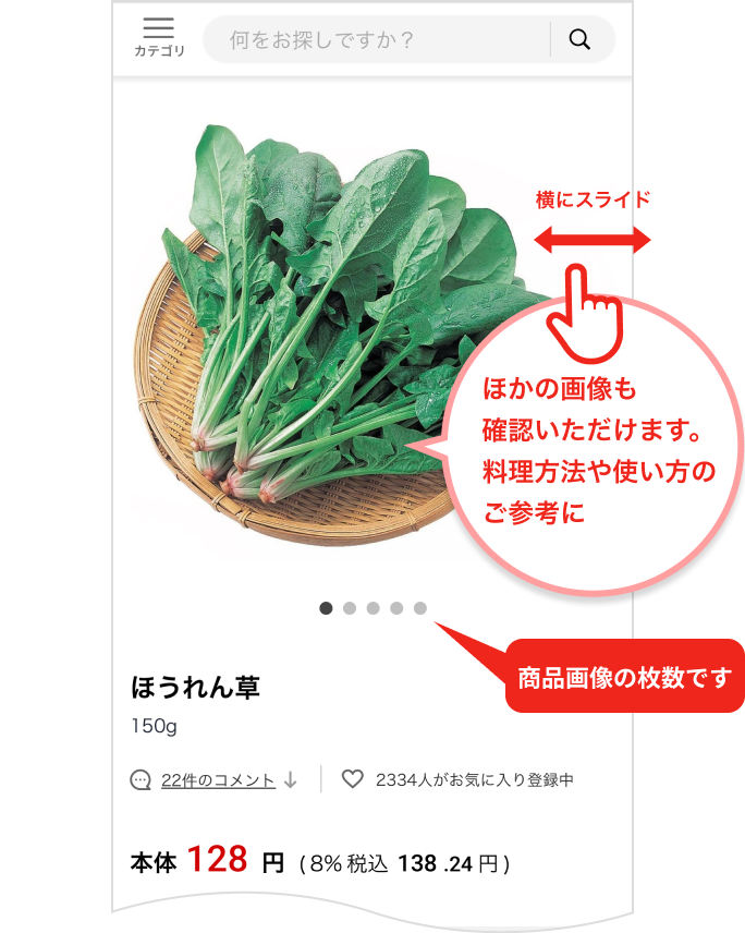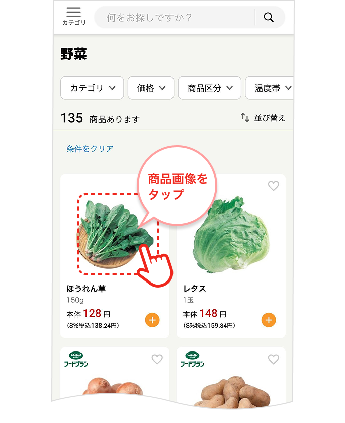 1. カテゴリを選んで商品一覧を表示します。見たい商品の画像を選択します。