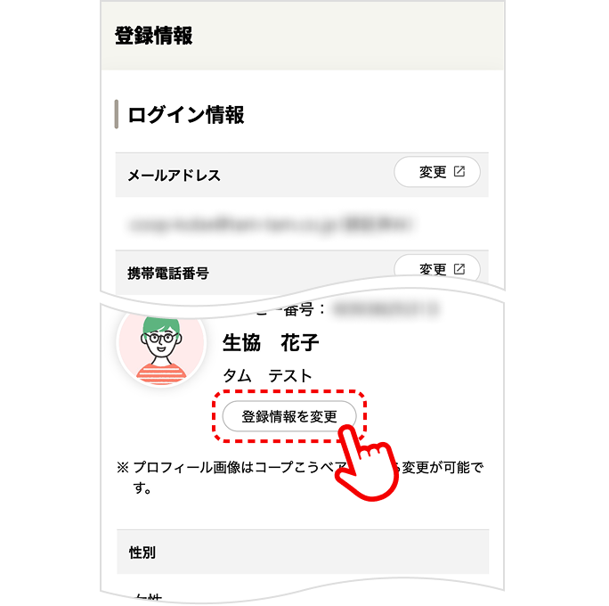 2. 登録情報にある「登録情報を変更」をタップクリックします。