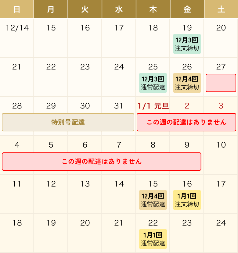 友の会やマイとーろくなどの予約商品、また、WEB限定商品や、WEBカタログも対象となります。